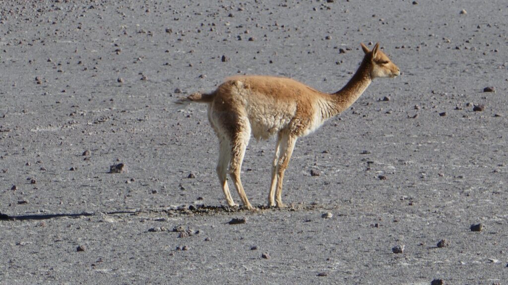 Die vielfarbigen domestitizierten Lamas laufen nicht davon, die wilden Vicuñas schon