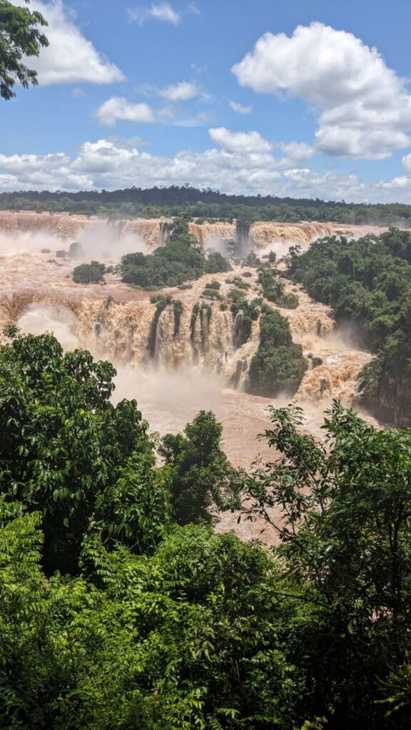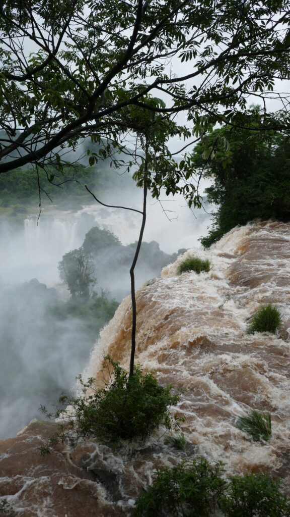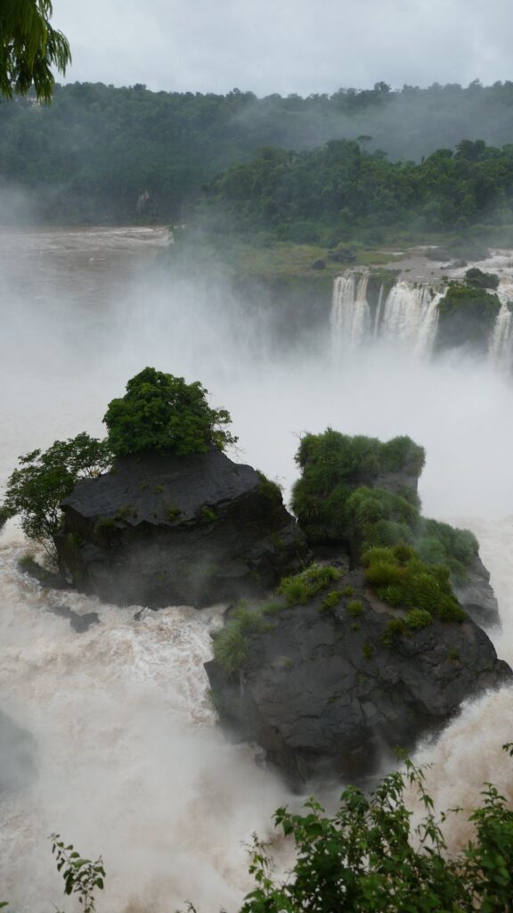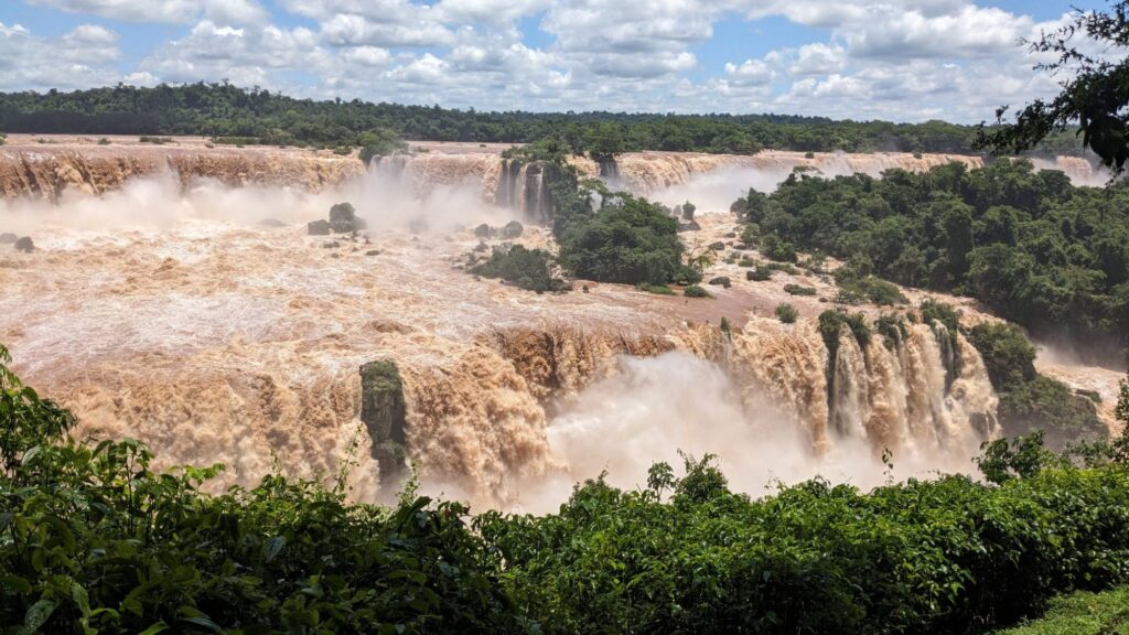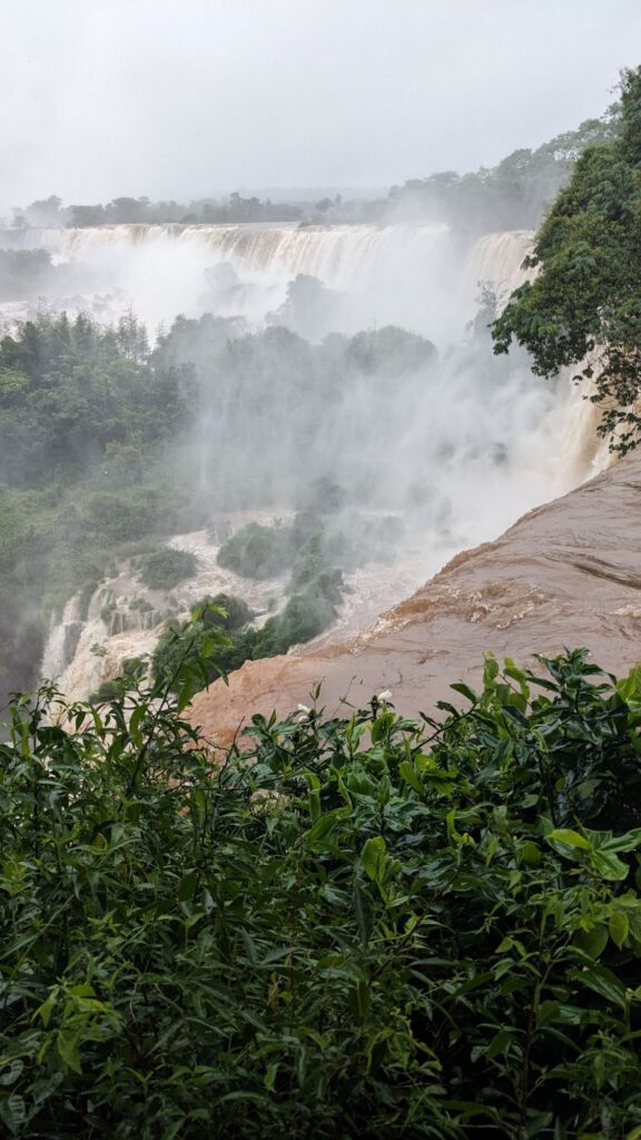 Die Sicht war nach den schweren Regenfällen im brasilianischen Einzugsbereich des Rio Iguazu mäßig. Naturgewalt ist trotzdem sehr beeindruckend. Blick vom Camino Inferior