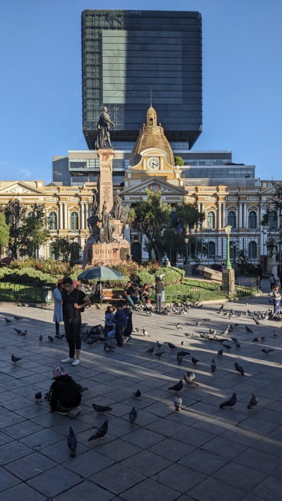 Unser erster Eindruck ist jedoch positiv, unser Hotel liegt einer Mittelschicht-Gegend (San Pedro). Es ist zwar laut, aber die Leute sind europäischer angezogen. Es gibt Cafes, Bäume und bessere Geschäfte.