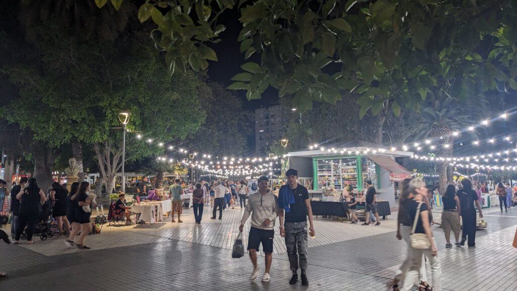 Am Samstag Abend ist Leben in der kleinen Universitätsstadt. Bei immer noch über 30 Grad kann man bis nach Mitternacht draußen sitzen . Die Einheimischen starten erst ihre Fiestas.