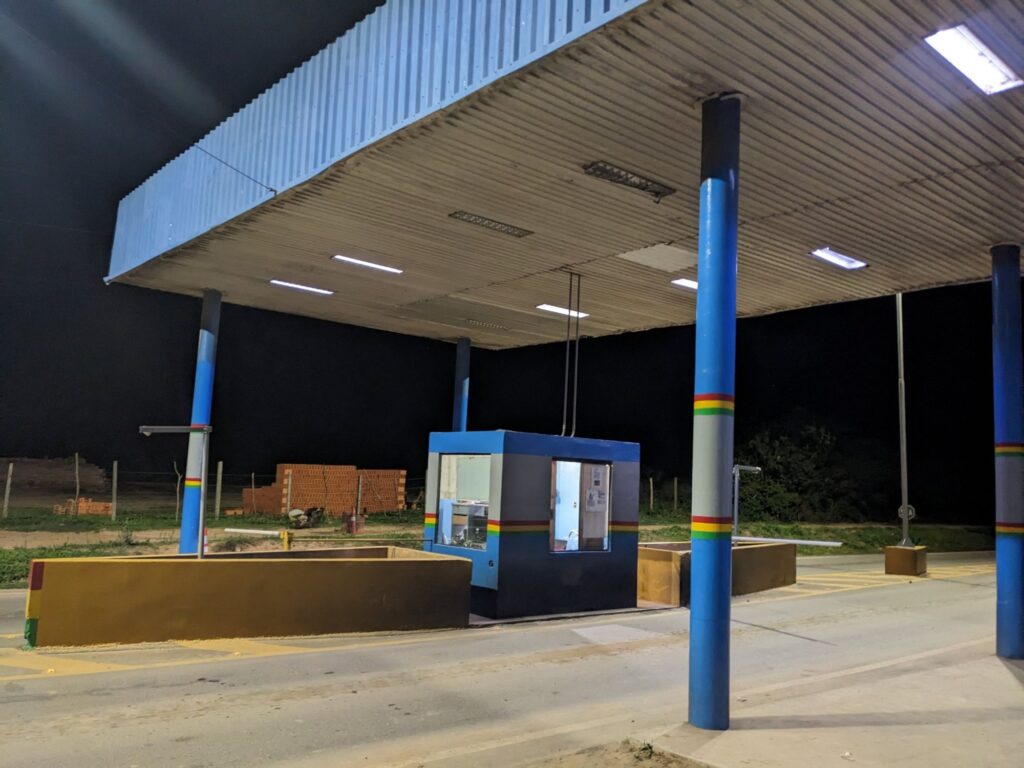 Abenteuer Nachtbus-Fahrt: von dieser Mautstation werden wir nach 1 Stunde Warten bei stark abnehmender Temperatur in den Coach verfrachtet. Die Schlafsessel sind OK, vor allem wenn man kleiner als 1,62m wäre
