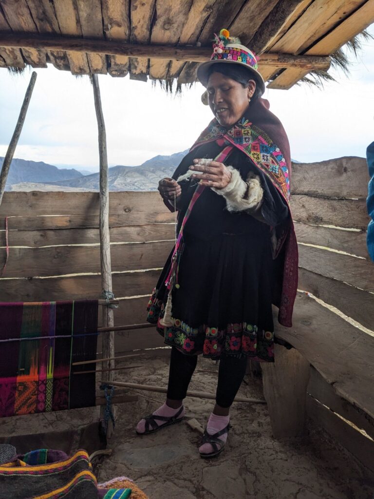 Mitten im Nichts steht diese indigene Weberin, für die Spanisch Fremdsprache ist und bietet ihre Werke an