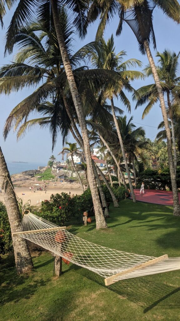 Wir machen eine Ayurveda – Kur: Täglich Yoga eine Stunde und 2 Stunden individuell angepasste Behandlung.