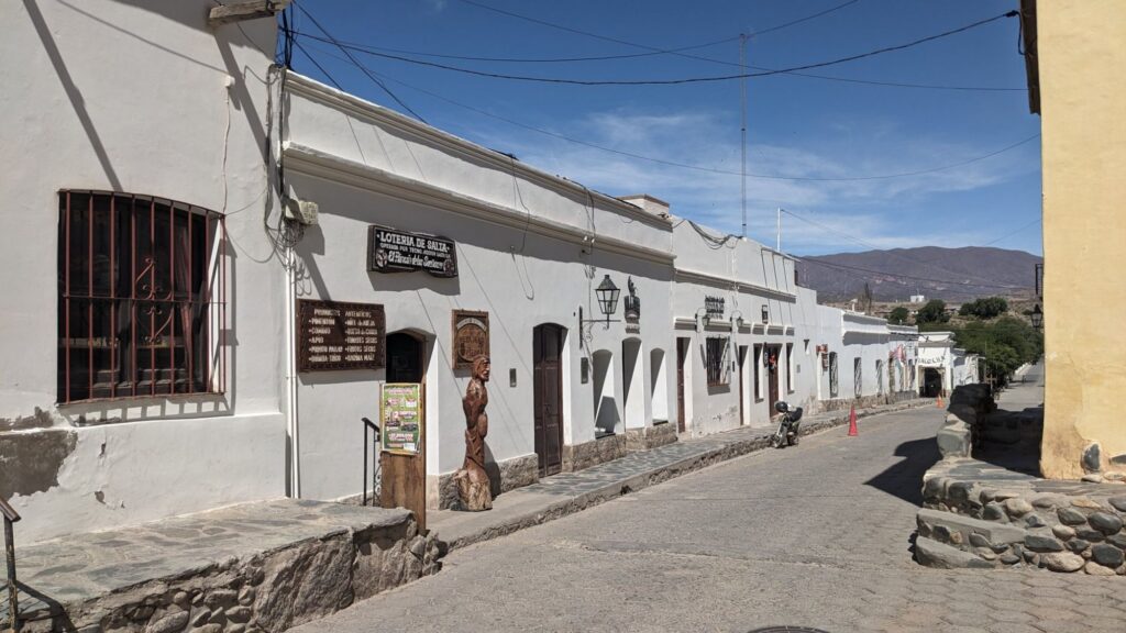 Cachi, erster Ort nach Stunden, bietet eine kleine Kirche mit Decken aus Kakteenholz (!) und Möglichkeiten zum Einkehrschwung